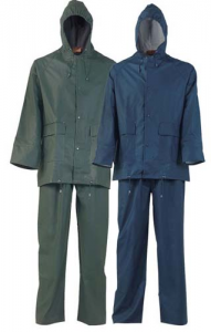 EN800 GUMIRANO kišno odijelo – VIŠA KVALITETA- materijal pes. s premazom poliuretana, sa kapuljačom koja se pakuje u kragnu, šiveni i vareni šavovi, elastična traka oko zglobova s unutarnje strane, 2 džepa. EN343
