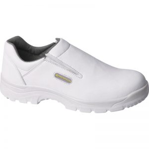 ROBION3 S2 plitke bijele cipele-mokasine. Gornjište od mikrofibre, vodootporno. Podstava poliamid od netkanog materijala, upija znoj te se brzo suši, unutarnji uložak na vađenje, zaštitna kapa. Potplat: duplobrizgani poliuretan, antistatic, SRC-otporan na proklizavanje, schok apsorber. Perive u perilici rublja do 30°C, jednostavno održavanje. EN ISO 20345 S2 A E SRC (br.36-47)