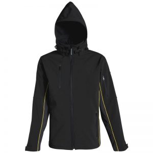 HORTEN – Softshell lagana jakna SA KAPULJAČOM materijal troslojni laminirani „Softshell” 96% poliester, 4% elastan. Vodonepropusni šavovi. Zatvaranje na patentni zatvarač s preklopom protiv hladnoće. Otvori rukava obrubljeni, 4 džepa. DOSTUPNE BOJE: Crna-Žuti detalji (NA SLICI), Crna-narandžasti detalji