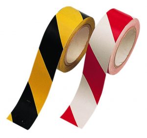 TRAKE SAMOLJEPLJIVE – za obilježavanje vanjsko i unutrašnje, samoljepljive, dim. 48mm x 28m. Dostupne su u dvije kombinacije boja: crveno-bijela i crno-žuta.