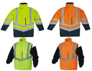 OPTIMUM2 4u1 – Zimska jakna sa fluo trakama 4u1, podstava-unutrašnja jakna na vađenje sa rukavima na skidanje. *VANJSKA JAKNA sa vodonepropusnim šavovima od materijala:poliester Oxford s premazom poliuretana i sa fiksnom podstavom od poliestera. Prednje zatvaranje zatvaračem sa dodatnim preklopom, fiksna kapuljača, ovratnik podstavljen polarnim flisom,4 džepa. Reflektirajuća siva traka – klasa 3, srebrne boje, trake postavljene vodoravno i okomito. *UNUTRAŠNJA JAKNA od materijala poliester Oxford s premazom poliuretana sa vodonepropusnim šavovima, podstava na unutrašnjoj jakni poliester Taffetas, 4 džepa. Rukavi na skidanje od materijala polarni flis tako da se može nositi i kao prsluk. Reflektirajuća siva traka – klasa 2, trake postavljene okomito. Našivena traka visoke vidljivosti 3M Scotchlite™ srebrne boje i na vanjskoj i na unutrašnjoj jakni. DOSTUPNE BOJE: Žuta fluo-Tamnoplava, Narančasta fluo-Tamnoplava